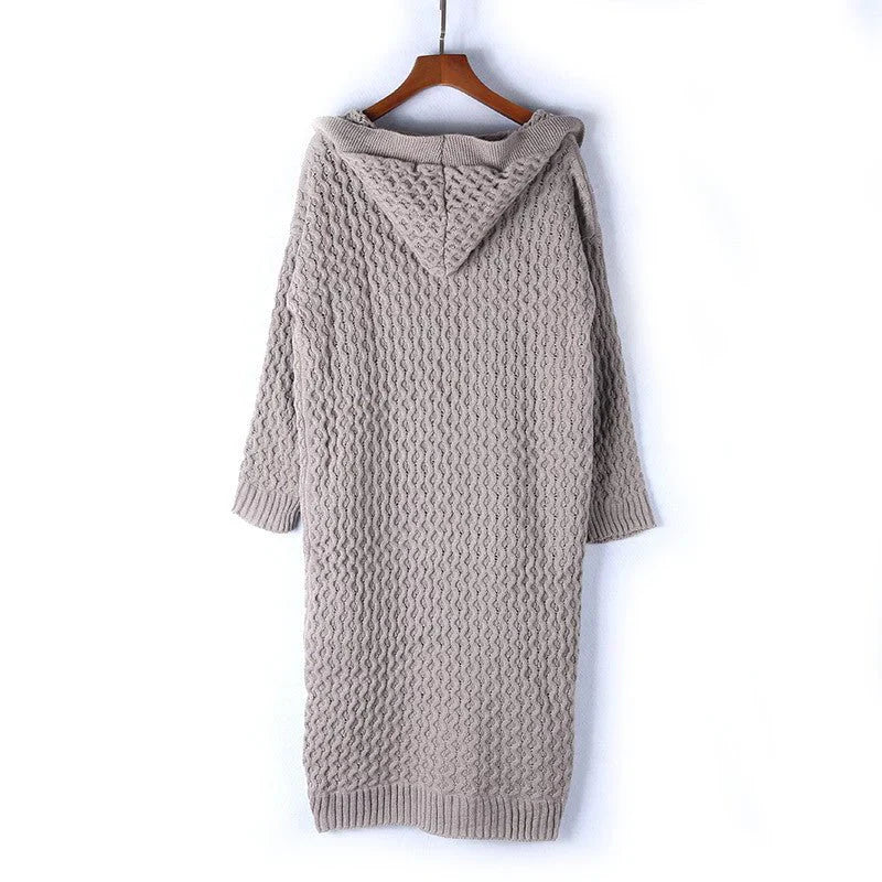 Women's Knitted Cardigan – Oversized Fit – Long Cable Knit – With Hood