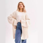 Women's Knitted Cardigan – Oversized Fit – Long Voluminous Sleeves – With Pockets