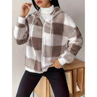 Women's hooded cardigan coat – Relaxed fit – Fluffy fabric – Checked pattern – Zipper closure