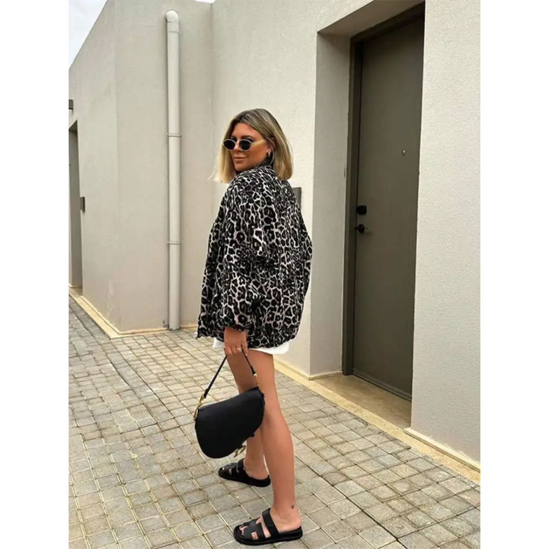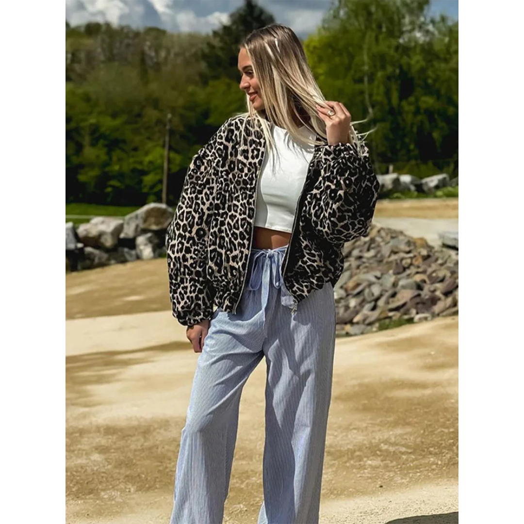 This elegant women's coat with leopard print has a striking design that adds both style and flair to your winter wardrobe. It offers a refined appearance with a playful twist, perfect for a chic look.