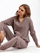 Women's Knit Set – V-neck Sweater – Relaxed Fit – Jogging Pants with Cuffs