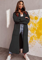 Women's Long Cardigan – Knitted – Relaxed Fit – Open Front – Pockets – Ribbed Edges