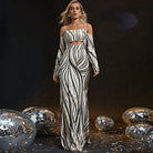 Ladies Maxi Dress – Bodycon Fit – Shiny Fabric – Long Sleeves – Cut-Out Detail