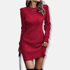 Ladies Mini Dress – Slim Fit – Ribbed Knit – Long Sleeves – Puff Shoulders