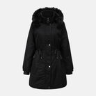 Ladies Parka Coat – Lined – Mid-Length – Adjustable Waist Drawcord – Faux Fur Hood – Ribbed Cuffs
