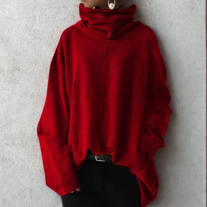- Design: Oversized fit with high cowlneck, flared sleeves and subtle seam details