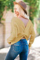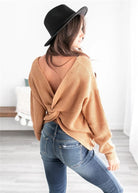 Women's Sweater – Relaxed Fit – Open Back Twist – Wool Mix – Ribbed – Long Sleeves