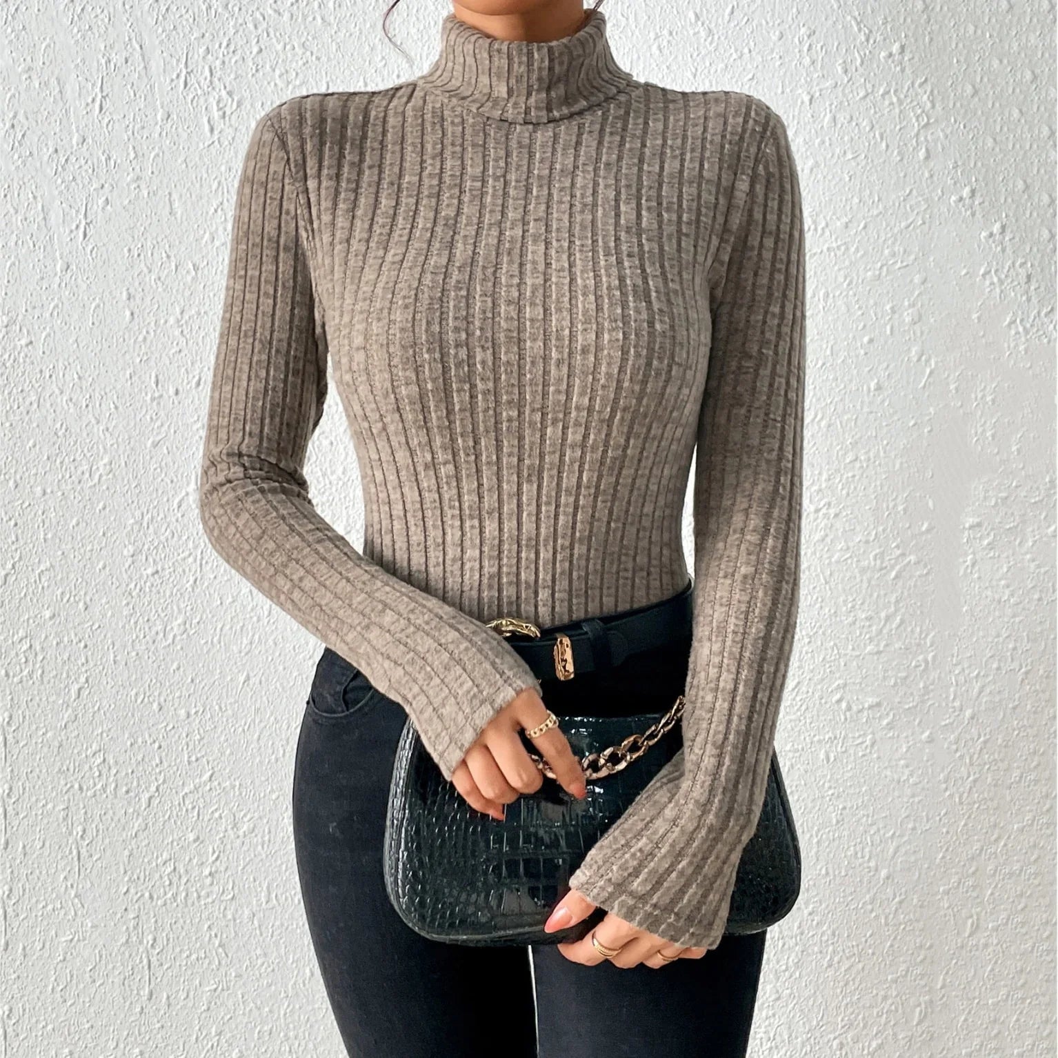Ladies Turtleneck Sweatshirt – Slim Fit – Ribbed Texture – Soft Wool Blend – Long Sleeve