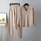 Ladies Two-Piece Set – V-neck Sweater – Ribbed Jogging Pants – Knitted Comfort Fit