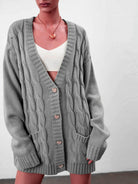 Ladies Cardigan – Oversized Fit – Chunky Knit – Cable Pattern – Heart Shaped Buttons