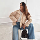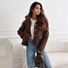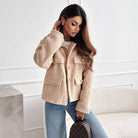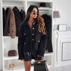 Women's Coat – Relaxed Fit – Plush Texture – Metallic Buttons – Flap Pockets