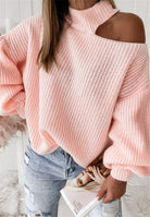 Women's Sweater – Oversized Fit – Knitted – Asymmetrical Shoulder – High Ribbed Collar
