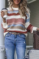 Women's Sweater – Wool Knit – Relaxed Fit – Long Sleeve – Striped O-Neck Design