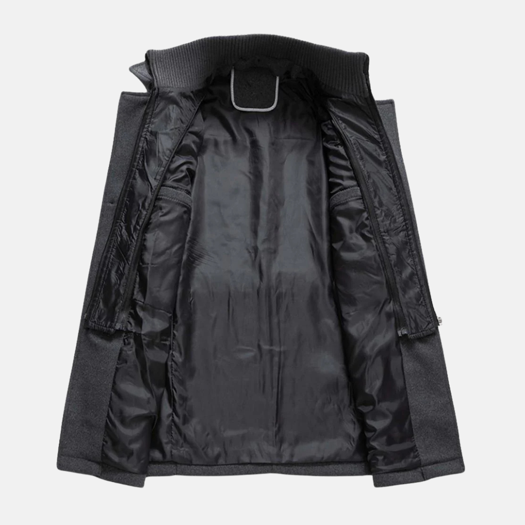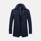 Men's Coat – Slim Fit – Wool Blend – Double Collar with Zipper – Epaulettes – Mid-length
