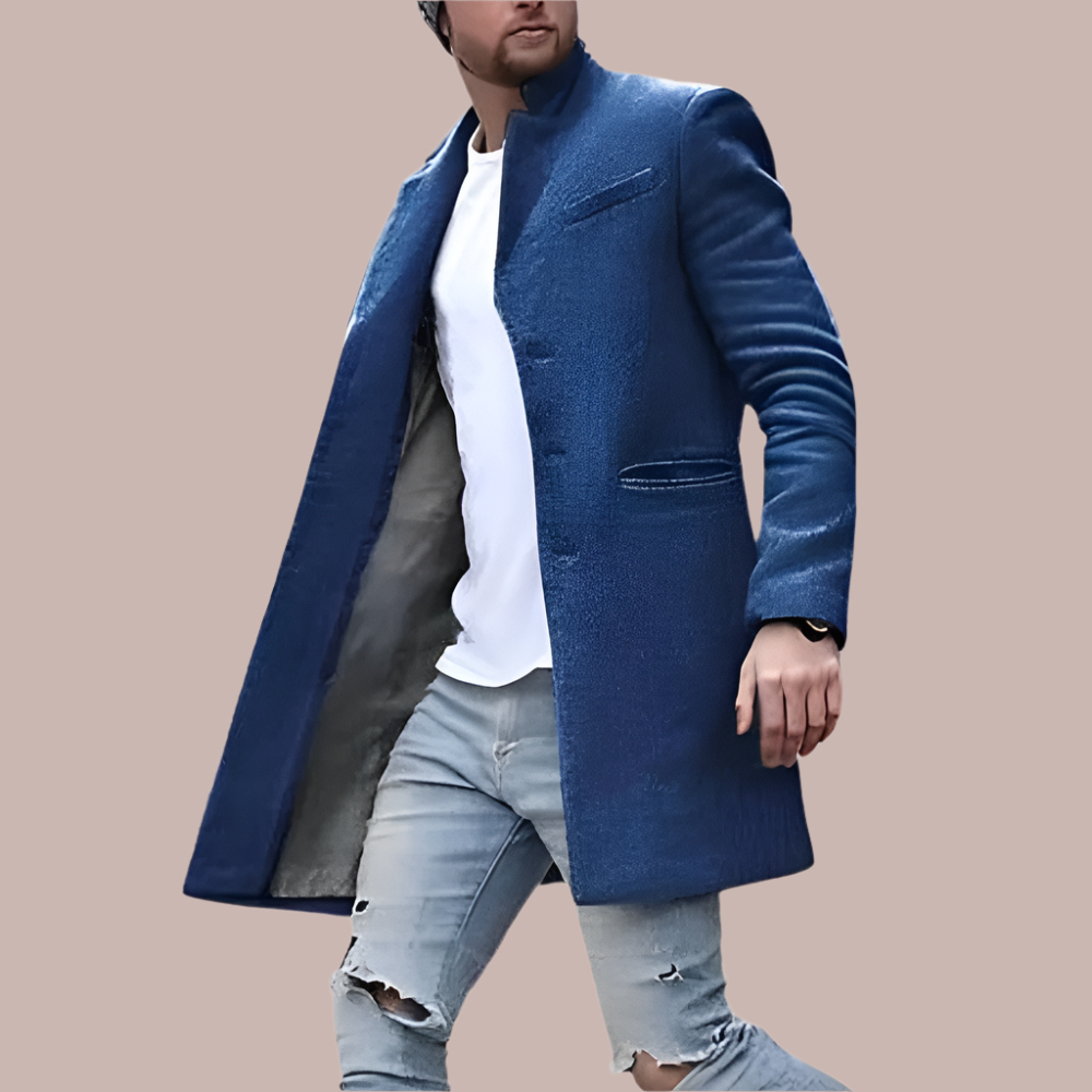 Men's coat – Wool mix – Tailored fit – Buttons – High collar – Mid-length