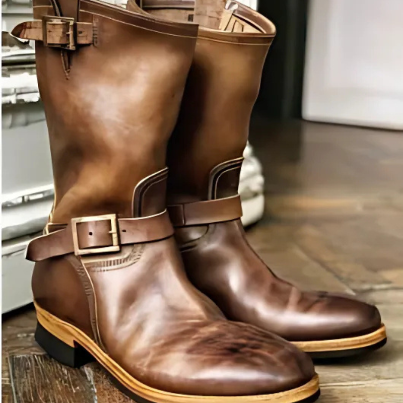Men's Mid-Calf Boots – Leather – Buckle Straps – Goodyear Welt Construction