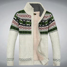 Discover the Men's Zip-Up Sweater – Wool-Blend Knit – Sherpa Lining – Regular Fit – Full Zipper. This warm and comfortable sweater, with luxurious sherpa lining and a stylish jacquard pattern, is perfect for cold days. The regular fit and full zipper offer versatility and optimal comfort.