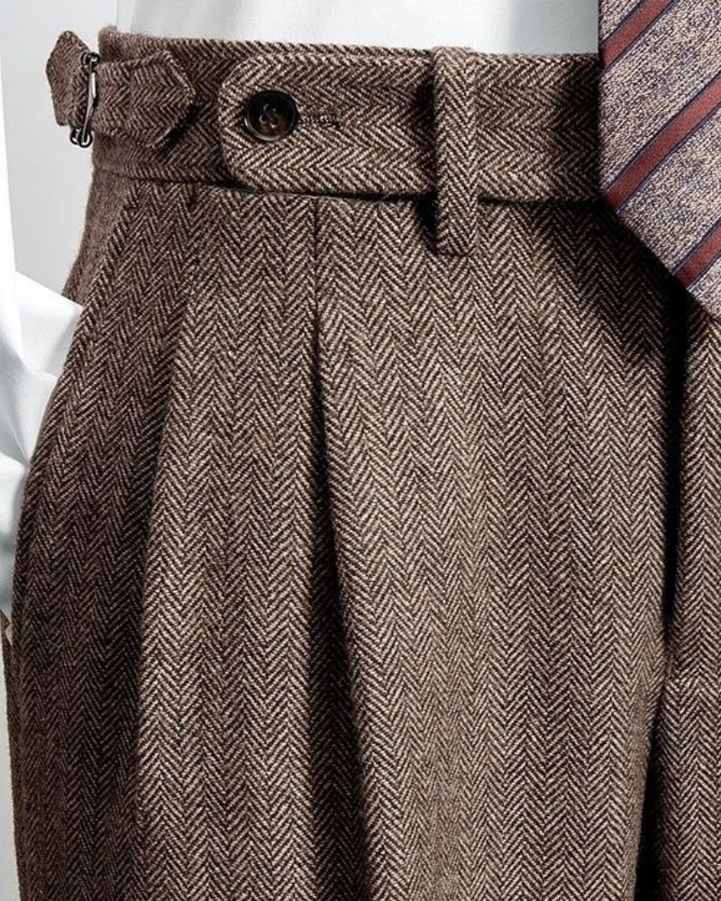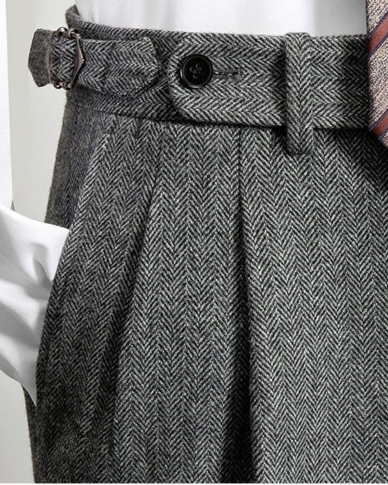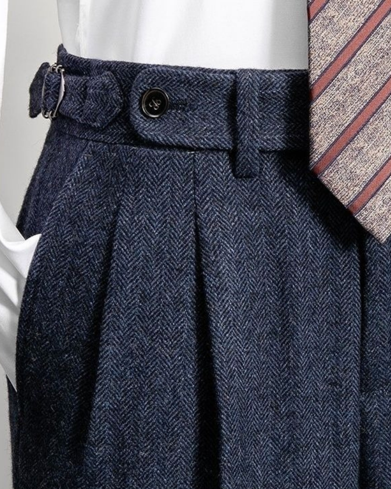 Men's Trousers – Slim Tapered Fit – Wool Blend – Front Pleat – Adjustable Waist – Turned Up Hem