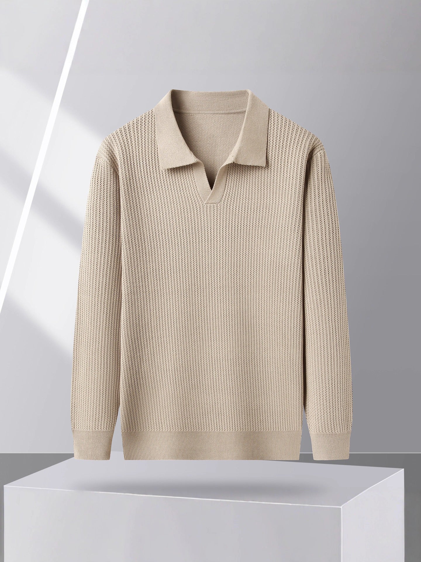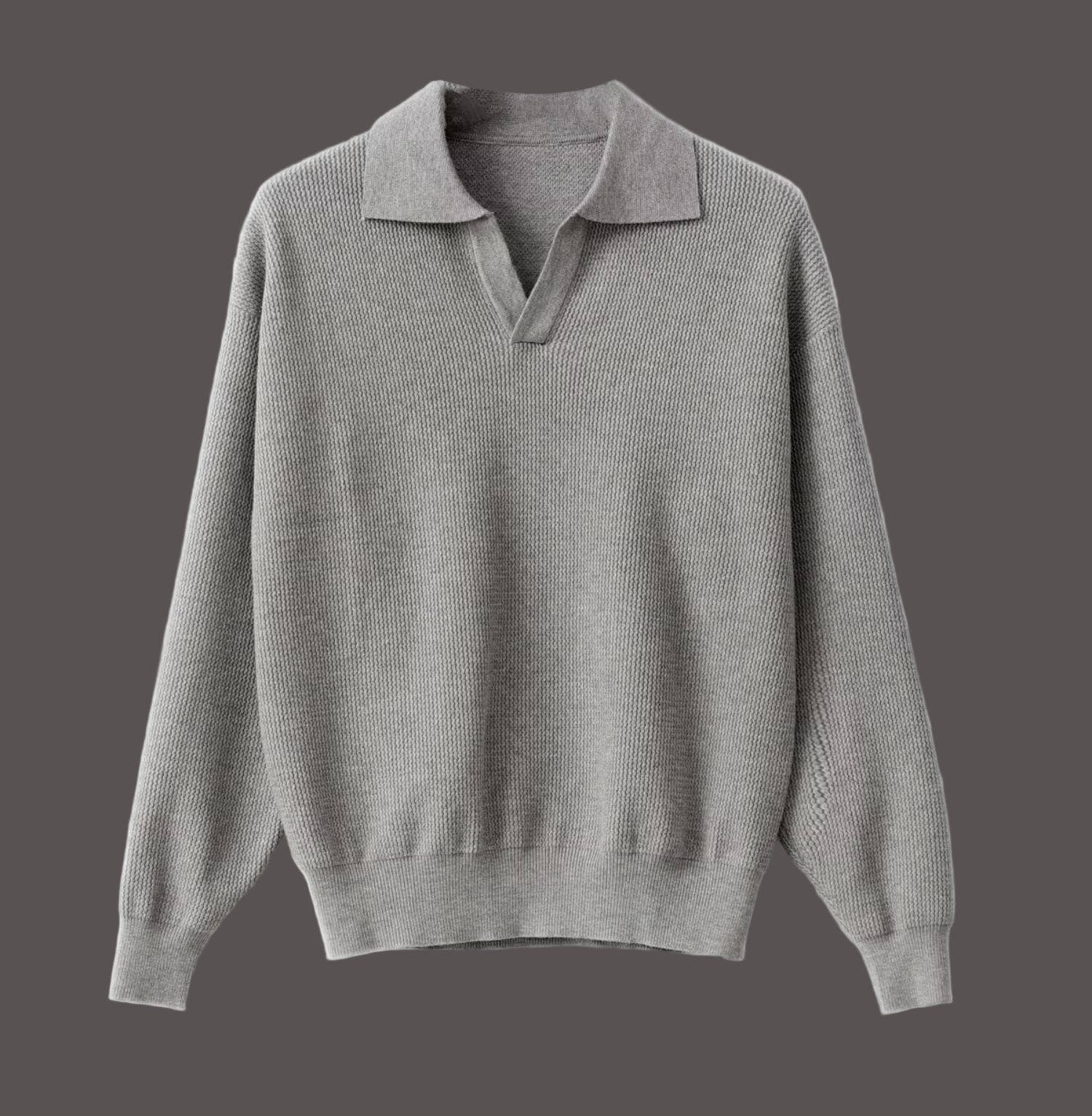 Men's polo with long sleeves – knitted – oversized fit – ribbed cuffs – breathable