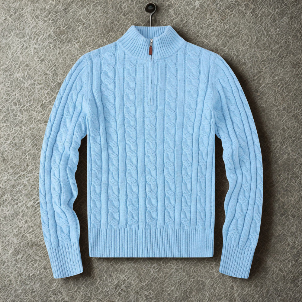 Men's Half-Zip Sweater – Regular Fit – Cable Knit – Stand-up Collar – Ribbed Trims