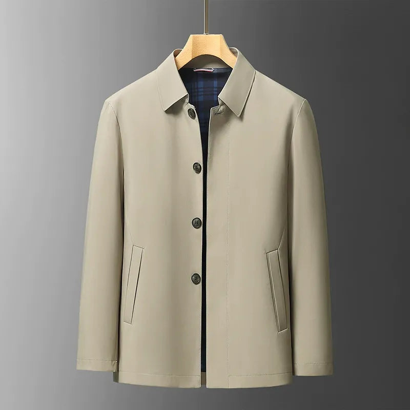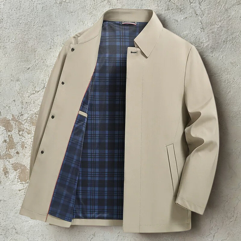 Men's Jacket – Regular Fit – Mid-length – Button Closure – Point Collar – Checked Lining
