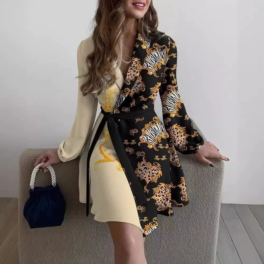 Women's maxi dress – V-neck – Transparent layer – Tie belt – Long sleeves