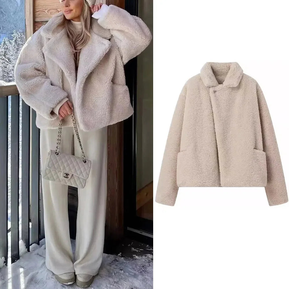 Women's Jacket with Lapel Collar and Pockets for Autumn/Winter