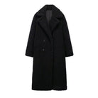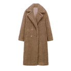 Women's Long Coat - Teddy Fabric - Oversized Fit - Double-Breasted Closure