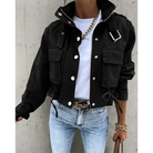 This women's casual short jacket with buttons offers a fresh and modern look, ideal for a relaxed day outdoors. The buttoned design provides a classic and chic finish, while the short length makes the jacket perfect for a casual look in the autumn or winter.