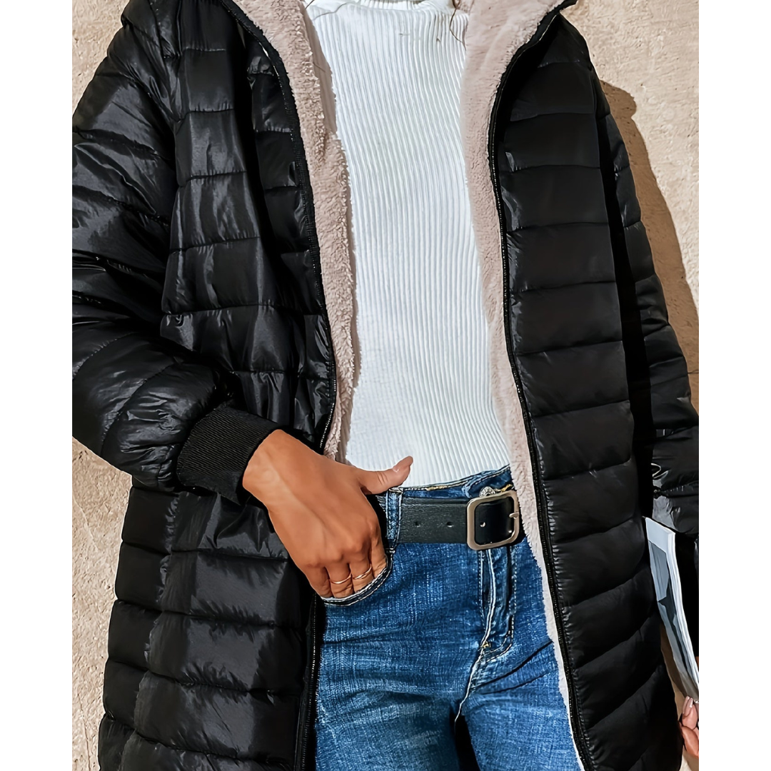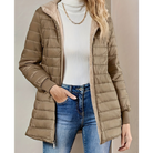 This women's winter jacket with hood and zipper offers a modern and practical style that is perfect for everyday use. The clean design and subtle details make this jacket versatile and attractive for a variety of occasions.