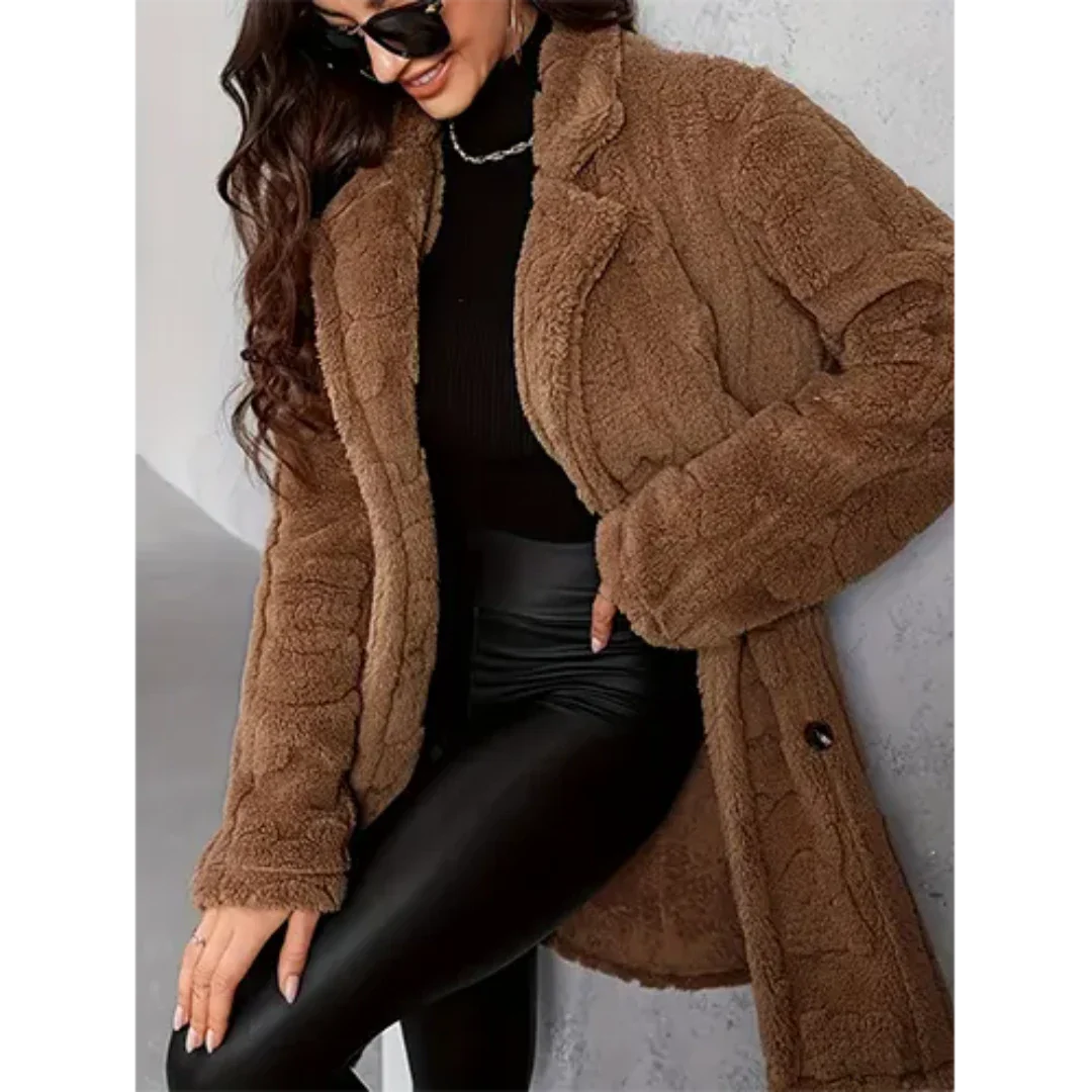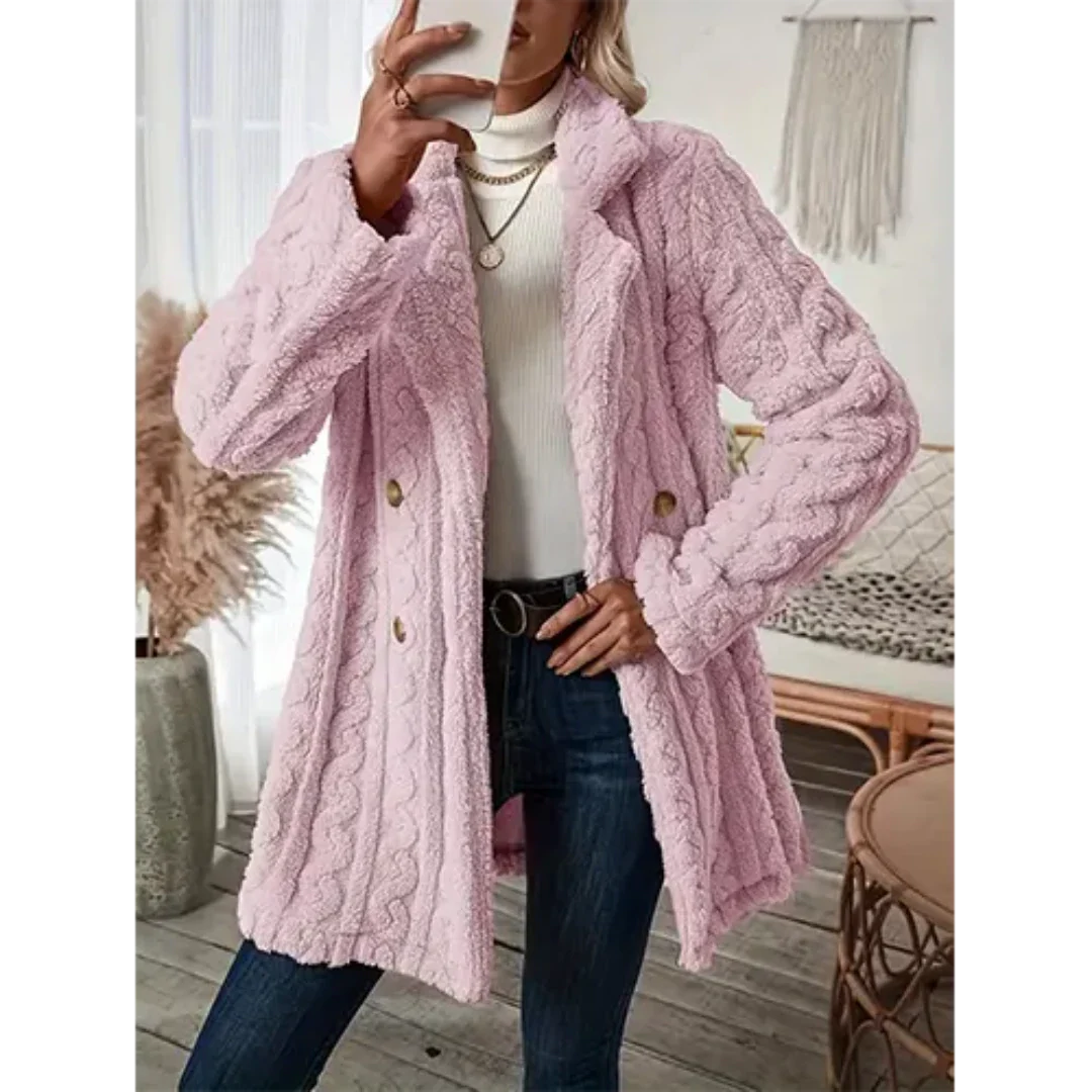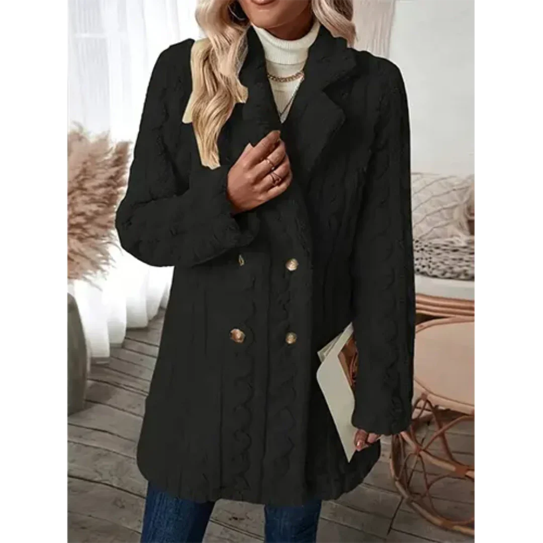 This women's winter coat with double buttons exudes elegance and warmth, ideal for the colder seasons. The classic design with a double row of buttons gives the coat a stylish appearance, while the comfortable fit is perfect for everyday wear. A beautiful coat that effortlessly combines functionality and style.