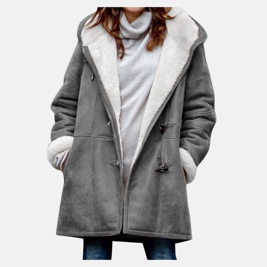 Women's coat with hood - mid-length - comfortably warm