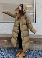 Women's Long Quilted Puffer Jacket - With Hood - Relaxed Fit - Windproof Warm