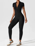 This jumpsuit with a zipper offers a sleek, modern look and is a perfect mix of comfort and style. The design is minimalist with a functional zipper, making it a practical and fashionable choice for various occasions.