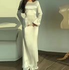 Ladies Evening Dress – Satin Look – Off-Shoulder – Long Trumpet Sleeves – Maxi Length