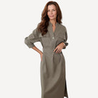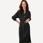 Jules | Women's shirt dress with belt – Midi dress with pockets in Khaki and Black