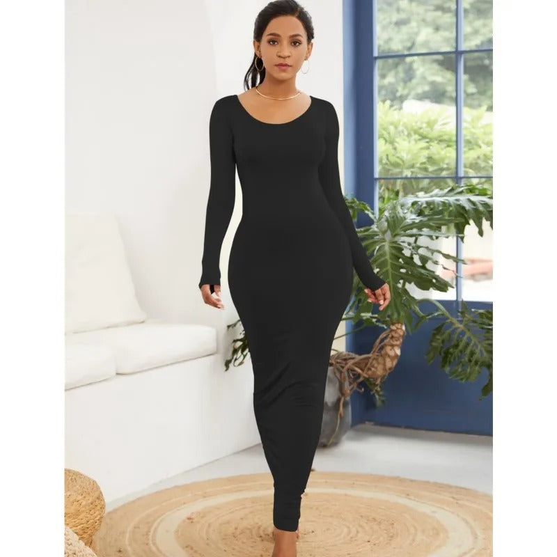 A graceful and timeless long dress that offers elegance in a single piece. The sleek silhouette and refined design make it perfect for both casual and formal occasions.