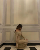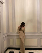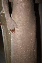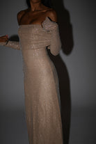 Ladies Evening Dress – Off Shoulder – Fitted Model – Long Sleeves – Glitter Details