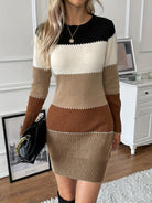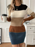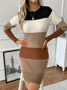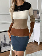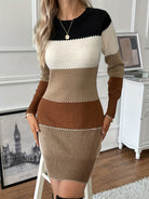 Chic Autumn Color Block Long Sleeve Dress for Women