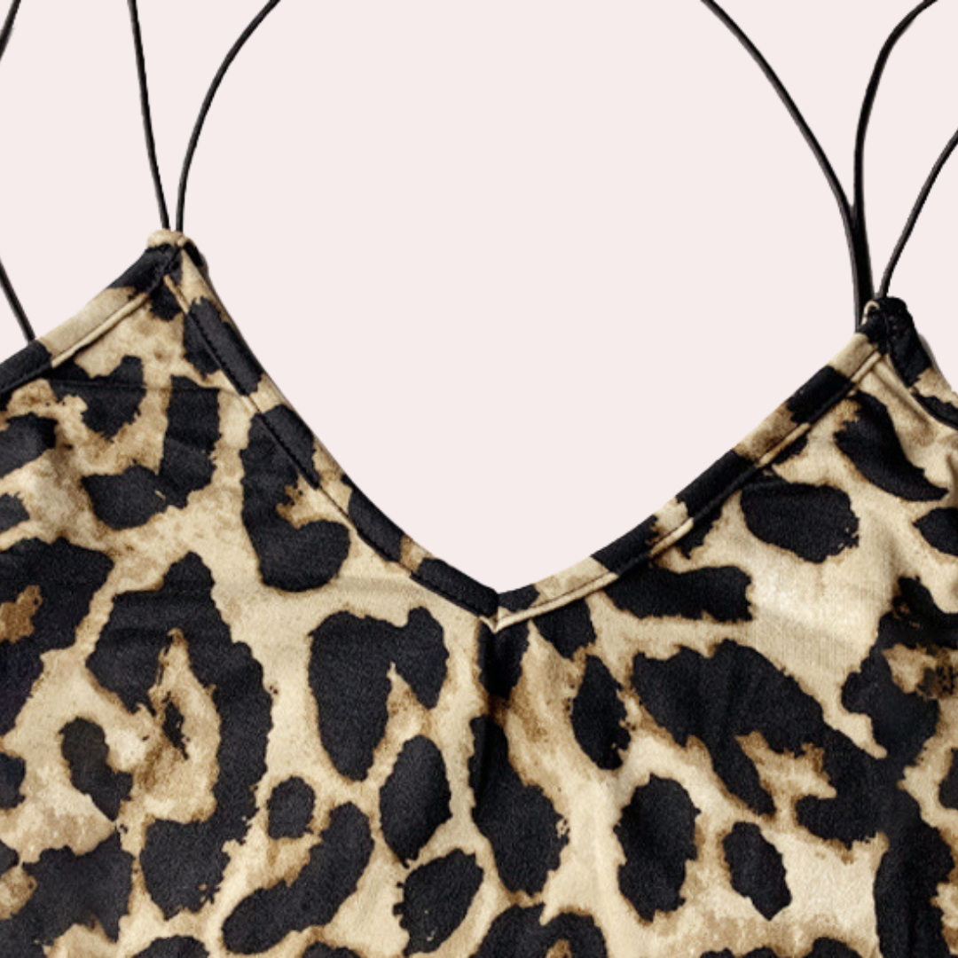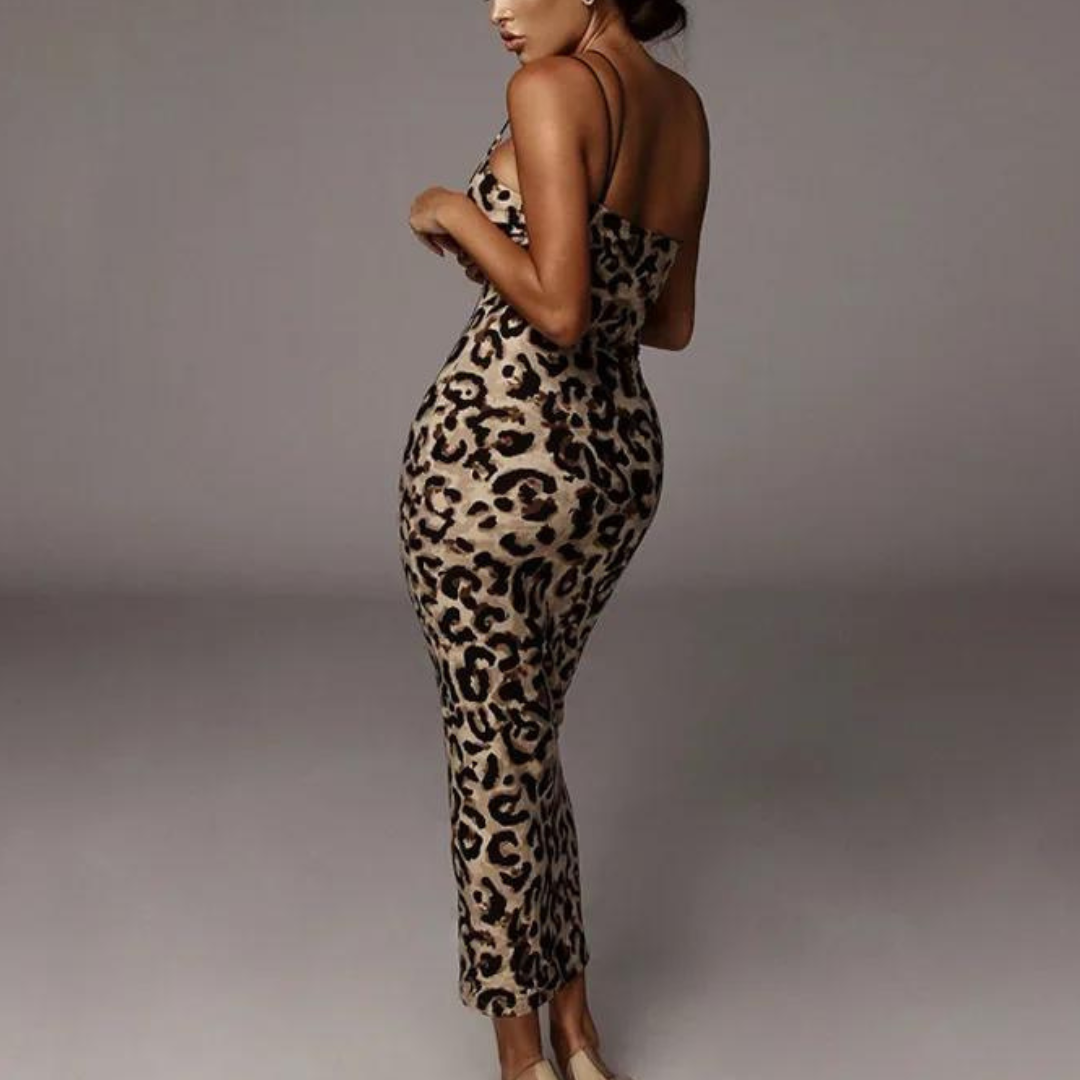A bold and fashionable dress with a striking animal print, perfect for those who want to make a statement. The dress combines modern style with a timeless pattern, making it a striking addition to any wardrobe.