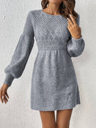 Stylish Autumn Chic Eyelet Lantern Sleeves A-Line Dress For Women