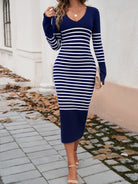 Stylish Autumn Striped V-Neck Sweater Dress for Women