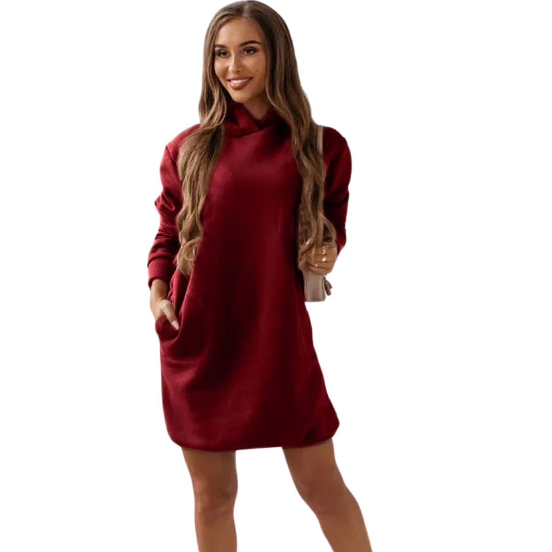 This stylish hooded dress effortlessly combines a modern design with a playful and casual feel. The unique hooded design adds a sporty touch to an elegant look, making it a versatile garment for any occasion.