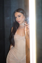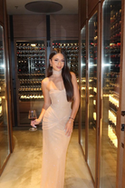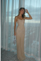 This glistening maxi dress with a mermaid silhouette exudes elegance and glamour, ideal for special occasions. With its form-fitting design and flared bottom, the dress accentuates the figure in a graceful way and creates a striking look.