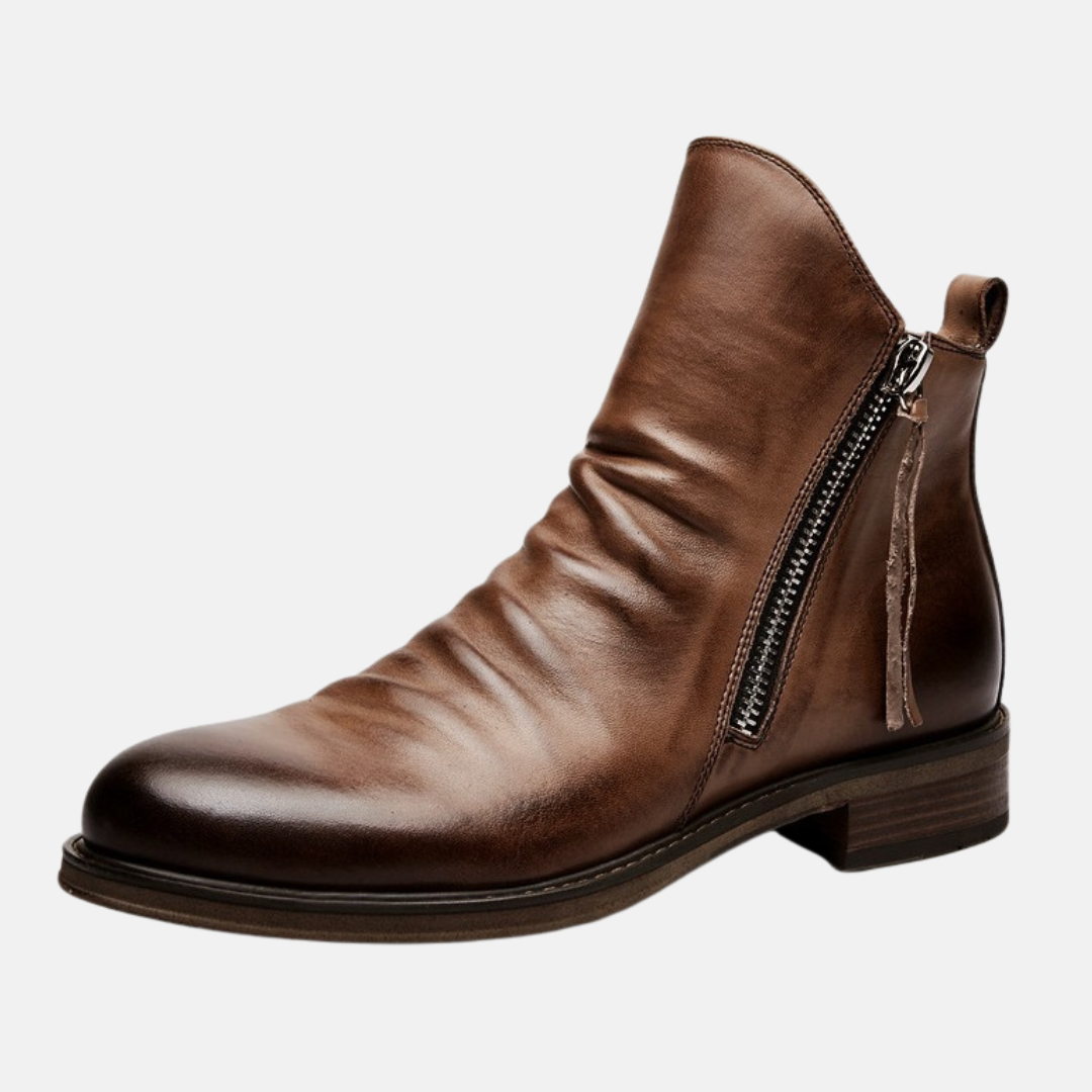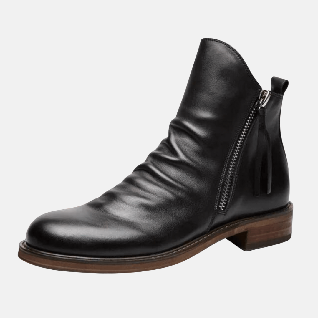 Men's Ankle Boots – Smooth Leather – Round Toe – Side Zip – Low Heel