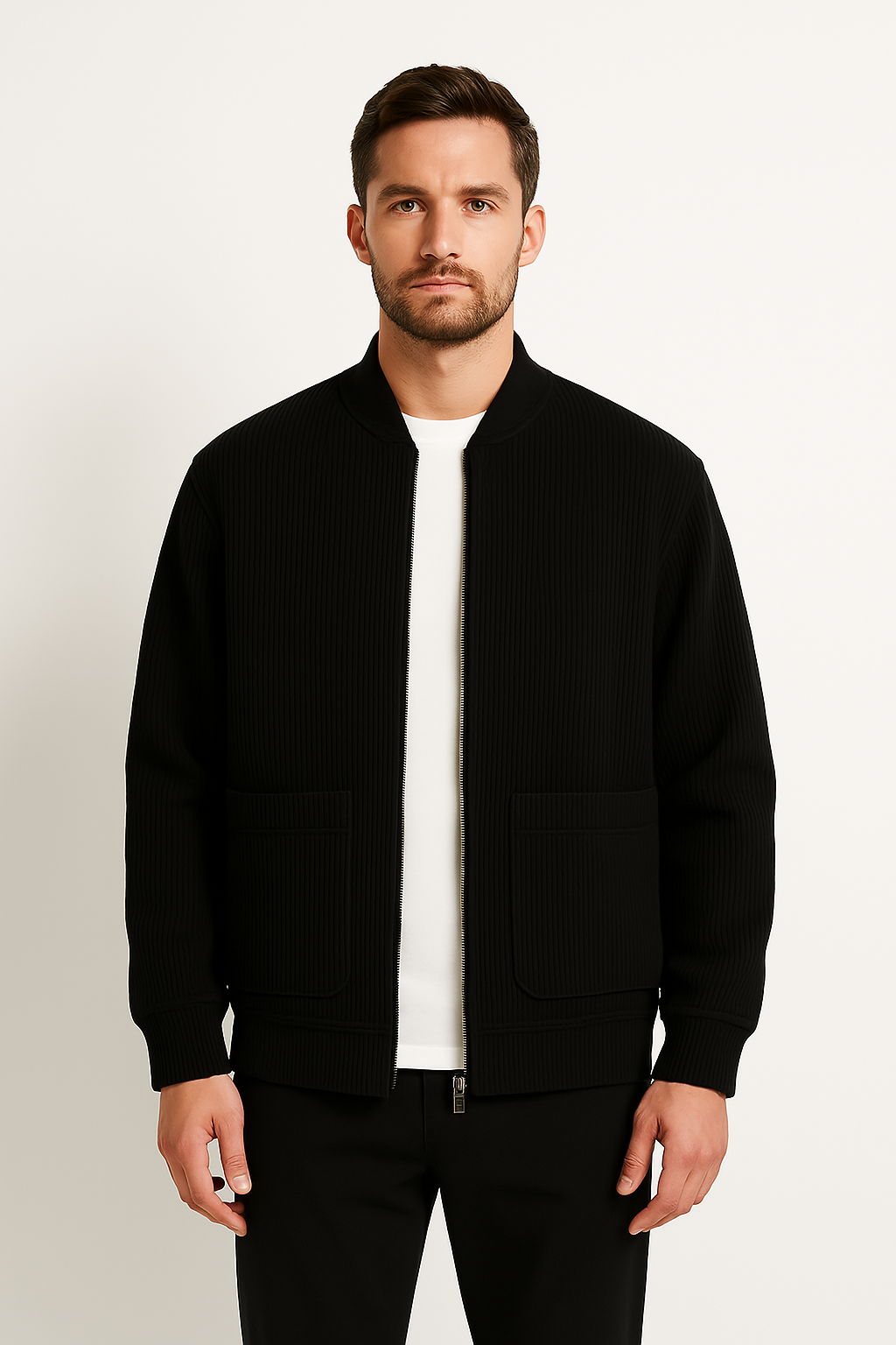 Men's Jacket – Corduroy Rib Texture – Relaxed Fit – V-Neck with Zipper – Casual Look