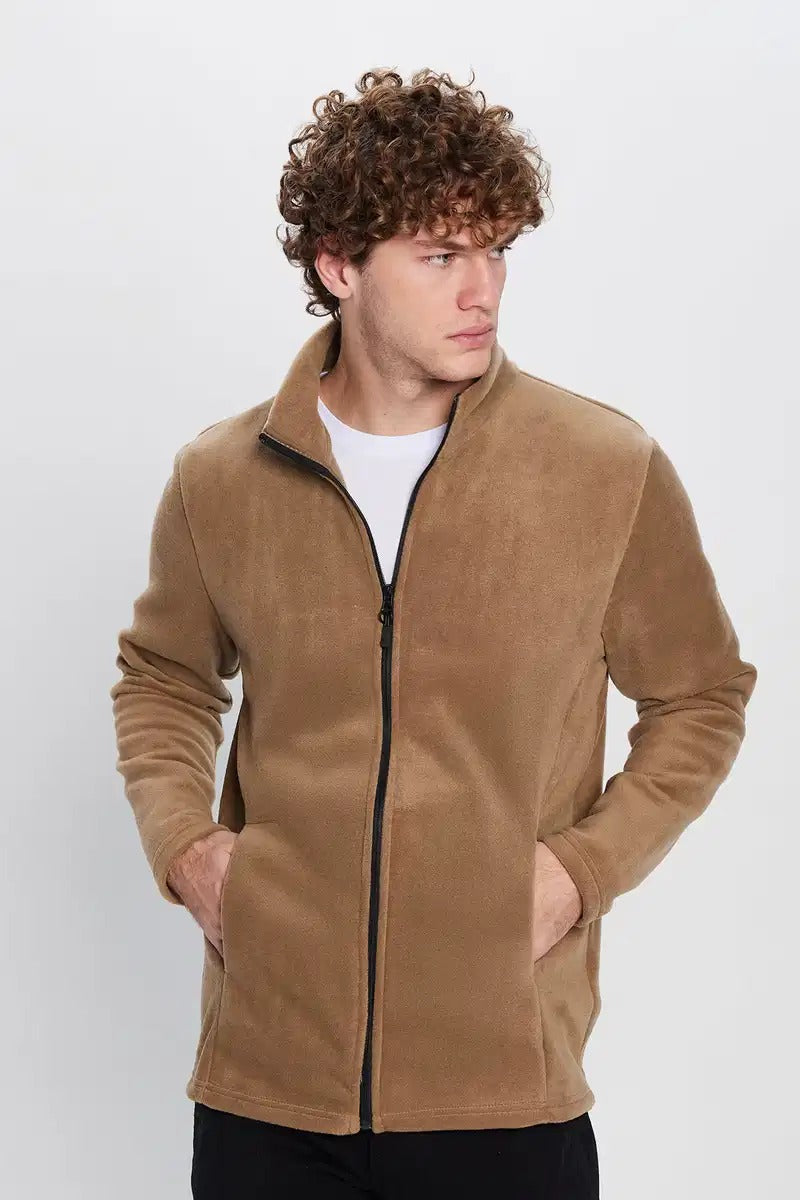 Men's Fleece Jacket – Regular Fit – Stand-up Collar – Full Zip – Side Pockets