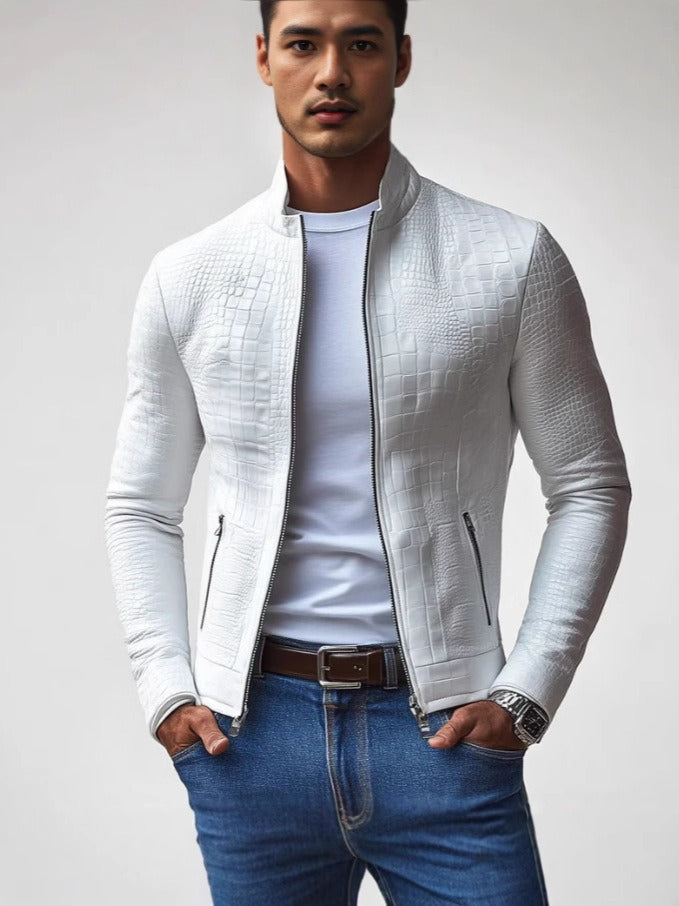 Men's Leather Jacket – Slim Fit – Stand Up Collar – Zipper Closure – Minimalist Design