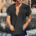 Men's Casual Shirt – Relaxed Fit – Short Sleeve – V-Neck – Natural Fabrics
