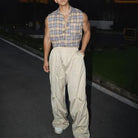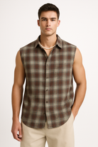 Men's Sleeveless Shirt – Loose Fit – Breathable – Button Closure – Checked Pattern